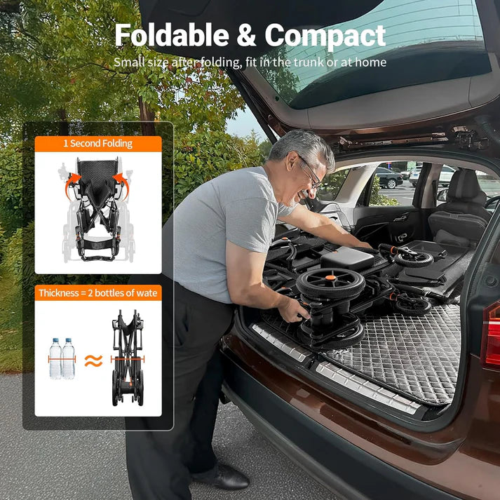 28 lbs Carbon Fiber Ultralight Foldable Electric Wheelchair – Dual Battery, 28-Mile Range, All-Terrain, Airline Approved